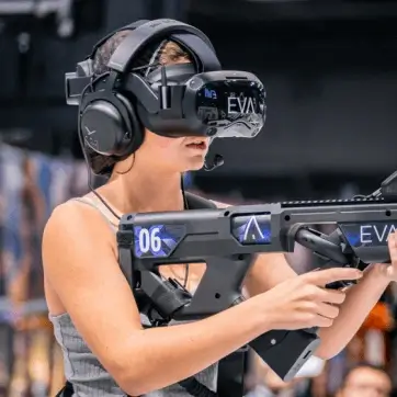 EVA, c’est le leader des jeux VR en équipe. La seule expérience à grande échelle, sur 5400 sq ft de terrain libre. Casque VR, gun connecté, liberté totale de mouvement : vous plongez dans un jeu de tir à la première personne, en pleine immersion. Accessible à tous, pensé pour le fun comme pour la perf, EVA fait passer le gaming dans une autre dimension.